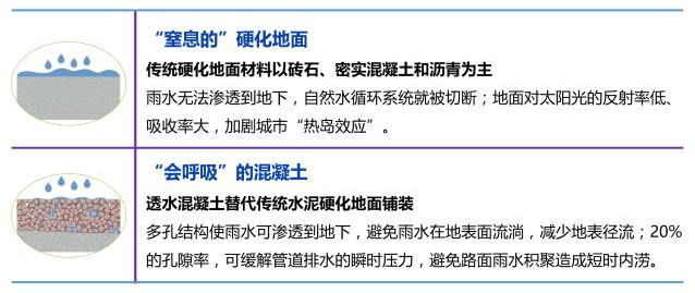 透水混凝土鋪裝是海綿城市建設(shè)不可或缺的手段,作為源頭徑流控制設(shè)施之一,能夠?qū)崿F(xiàn)海綿城市建設(shè)六大實(shí)施措施和手段中的滲、滯、蓄、凈、排五項(xiàng)功能。