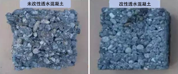 透水混凝土(孔隙率為15-25%)采用接近均一粒徑的粗骨料——膠凝材料集中分布于骨料表面和接觸點(diǎn);聚合物膜均勻地分布在水化產(chǎn)物和骨料之間,與水泥的剛性粘結(jié)一起協(xié)同提高體系的穩(wěn)定性。