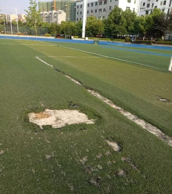 記者發(fā)現(xiàn),原本平坦的人工草地和塑膠跑道均出現(xiàn)了不同程度的塑膠斷裂、脫層,坑坑洼洼、凹凸不平的現(xiàn)象嚴(yán)重。市民廖先生不滿地說:“我每天晚上都要鍛煉身體,幾乎每次都能看到穿高跟鞋的、溜寵物的,還有的小孩也沒人看管,追追打打,零食、垃圾扔得到處都是。坐草地上玩的也很多,有時候足球隊(duì)都沒法訓(xùn)練,這公共設(shè)施都沒法發(fā)揮應(yīng)有的作用就被破壞了,有點(diǎn)可惜。”