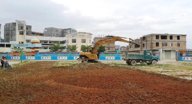 7月16日早上,一臺挖掘機(jī)和1輛卡車緩緩開進(jìn)文地中心校外操場,引來眾人圍觀。原來,這是該校硬化足球場的工程開始了。