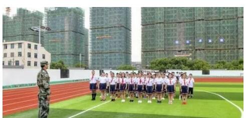 9月3日,浙江臺(tái)州市南官小學(xué)開(kāi)學(xué)第一課,孩子們?cè)诳罩协h(huán)形操揚(yáng)跑道上軍訓(xùn)。