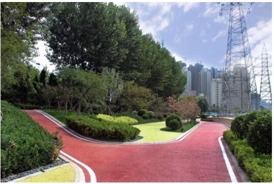 公園建設(shè)遵循“海綿城市”建設(shè)理念,園內(nèi)跑步路徑、休閑活動(dòng)區(qū)、觀景平臺(tái)等硬鋪裝區(qū)域均采用透水混凝土材質(zhì),充分發(fā)揮園區(qū)內(nèi)路徑、廣場(chǎng)對(duì)雨水的吸納、蓄滲和緩釋作用,有效控制雨水徑流,形成自然積存、自然滲透、自然凈化的“海綿路面”。