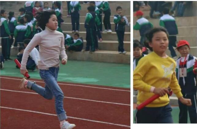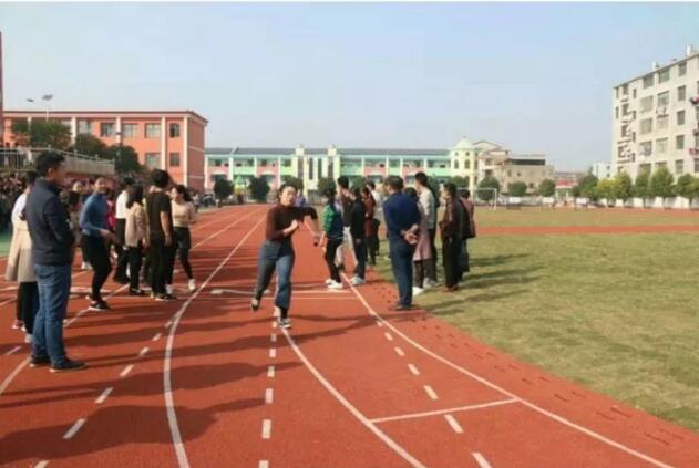 老師們也按捺不住,想在這塑膠跑道上一顯身手!陶老師那是飛毛腿啊,就像一道閃電?疾馳。