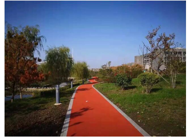 鮮艷的紅色塑膠步道蜿蜒延伸。踩上去,柔軟且富有彈性,讓身體放松舒展;沿途的風(fēng)景,絢爛且生機(jī)勃勃,讓人心曠神怡。