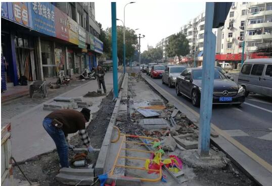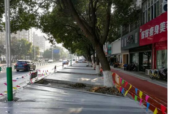 小編在現(xiàn)場看到,改造工程將原來的非機動車道及側(cè)分帶拆除,改成斜向停車位,這樣的設(shè)計既美觀又便于車輛出入。