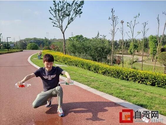 釜溪河復(fù)合綠道城區(qū)連接段步道,兩瓶礦泉水往彩色路面上一倒,就像海綿吸水一樣,彩色路面瞬間將水吸得干干凈凈。
