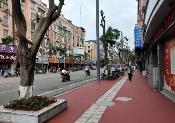 4月28日,記者來到建設路一段大富豪至九龍?zhí)焯荻慰吹?,街道兩旁棗紅色的人行道舒適平坦,灰白色的大理石樹池里新栽植的一串紅在初夏的晨光里搖曳生姿,改造后的人行道煥然一新,市民行走在嶄新的道路上舒適愜意。