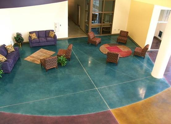 染色地坪是借助獨(dú)特工藝手法,將染色劑均勻滲入混凝土基面中,通過改變基面的原有的顏色,來形成各種絢麗的圖案與花紋,使地坪呈現(xiàn)出簡約卻不平凡的質(zhì)感。