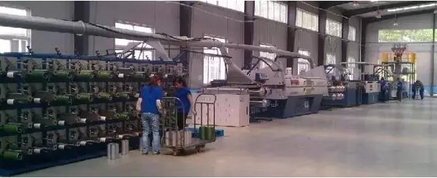 上圖這些都是拉絲機(jī),顧名思義,就是他們負(fù)責(zé)把母粒拉成……拉成……絲。當(dāng)然,這之前還有染色等流程哦。