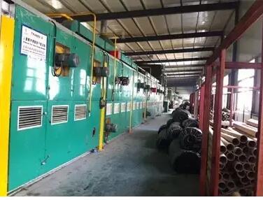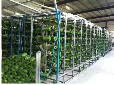 沒錯,就是這些織布機(jī)一樣的家伙,將一個個沙頭穿好,然后織好,那么最后一幅圖上的設(shè)備是做什么用的呢?長見識的機(jī)會來了,這叫做烘干機(jī),草坪織好后,背面要涂背膠,背膠涂好后,需要烘干。
