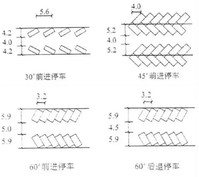 按照車輛不同形態(tài)特點(diǎn),目前在景區(qū)停車場停放的車位的布置形式,主要分為垂直式、平行式、斜角式三種,或同一停車場混合采用此三種停車方式。