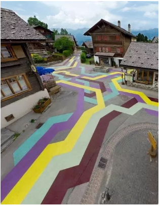 在古色古香的文化保護區(qū),在不破壞環(huán)境的前提下,彩色線條實現(xiàn)引導作用,實為一種智慧討巧的方法。