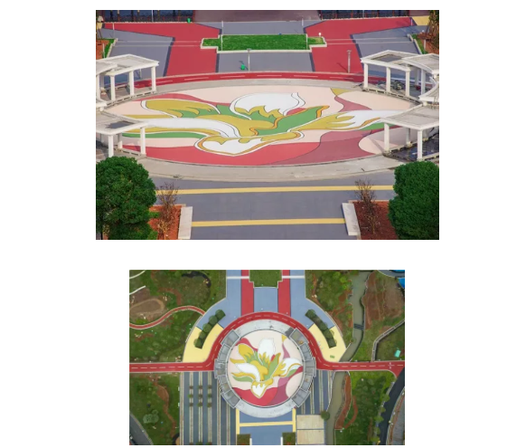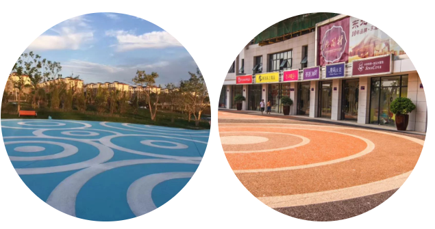 圓形鋪裝圖形完美柔潤,用時通過不同色彩的圓環(huán)鋪裝,給人以強烈的節(jié)奏感和韻律感。
