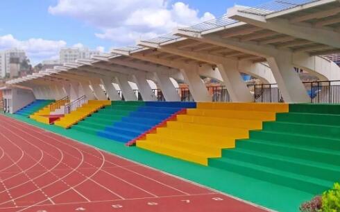 塑膠跑道外觀為顆粒狀結(jié)構(gòu),非滲水型。使用主材為運(yùn)動(dòng)場(chǎng)專(zhuān)用PU 涂料鋪設(shè),并在其表面鋪撒三元乙丙膠粒而成。