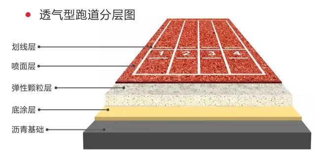 跨越體育 透氣型塑膠跑道采用國(guó)際田聯(lián)認(rèn)可的復(fù)合結(jié)構(gòu),面層為PU顆粒或EPDM耐候性環(huán)保彩色顆粒,底層聚氨酯樹脂粘合的環(huán)保顆粒,符合國(guó)際比賽標(biāo)準(zhǔn),標(biāo)準(zhǔn)厚度13mm。