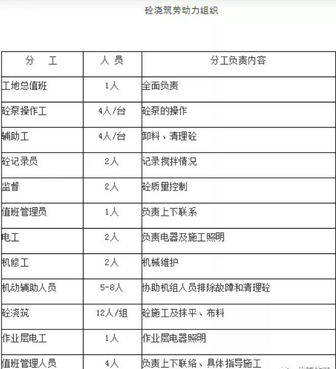 十二、砼澆筑勞動(dòng)力組織