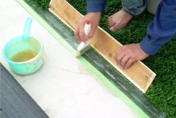 除開膠水質(zhì)量問題(當然,我家用的是草坪專用膠水,通過國家環(huán)保檢測標準的,請放心使用),要注意的是涂刷的厚薄度,晾曬的時間。厚薄不均會使草坪凹凸不平;膠水晾曬時間過短,草坪粘不牢,時間過長,草坪粘接后會開膠。這些都是施工師傅的場地施工經(jīng)驗總結(jié)出來的。