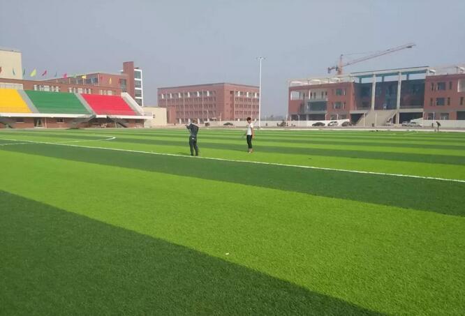 景芳中學副校長周榮華說:“人造草坪沒有泥地那么柔軟,所以要在下面做一層緩沖墊,然后在上面鋪上人造草坪,并在草中間填充石英砂和顆粒,讓草地踩起來有彈性,草能夠一根一根立起來。不過人造草坪也要定期進行維護,比如要對中間的顆粒進行補充。”