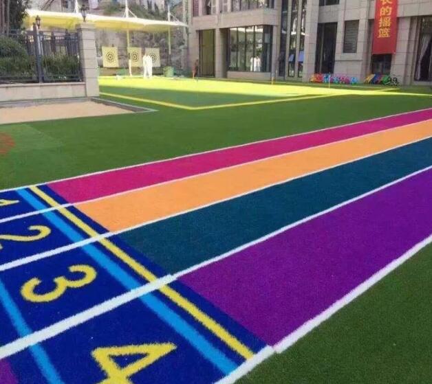 2、幼兒園的人造草坪美觀,多彩。在鋪裝的過程中,可以采取不同顏色的草坪拼接出不同圖案,可以有效提高幼兒園小朋友的思維。