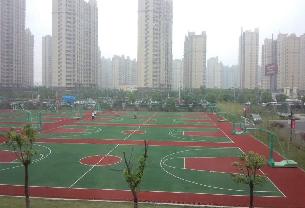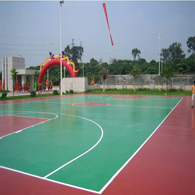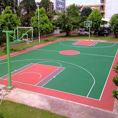 彈性丙烯酸籃球場:由100%的丙烯酸類材料和特制的聚合橡膠顆粒組成,具有良好的韌性,并可以遮蓋因基礎產生的細小裂縫;一年四季都能保持良好效果。具有極佳的減震性能,減輕打球者腳部和腿部受到的震蕩(尤其是和非專業(yè)選手及休閑娛樂);消除因設施產生的疲勞,提高運動樂趣。