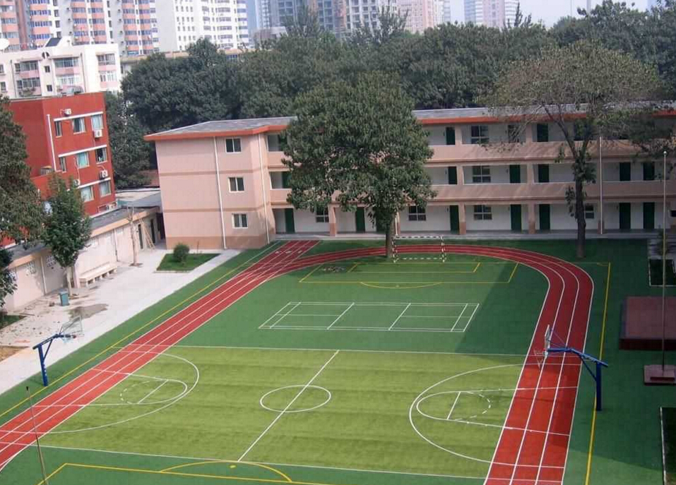 透氣型塑膠跑道是由EPDM彩色橡膠顆粒和單組份膠水按特殊比例混合后,經(jīng)過專業(yè)施工機(jī)械控制厚度鋪設(shè)。并在其表面以EPDM橡膠顆粒與同色聚氨酯面漆混合用專業(yè)的噴涂機(jī)噴灑覆蓋在橡膠基墊上,形成特殊的有組織的紋路,賦予面層正確的附著摩擦力和抗滑阻力。經(jīng)機(jī)械鋪裝的跑道材平整度佳,成型后材料內(nèi)含有多孔,透氣型塑膠跑道具備環(huán)保、透氣、透水、平整度好、施工期短、維護(hù)翻新也較容易,性價(jià)比高等特點(diǎn)。據(jù)不完全統(tǒng)計(jì),透氣型塑膠跑道在其大、中、小學(xué)的塑膠鋪裝比例上占居為63%