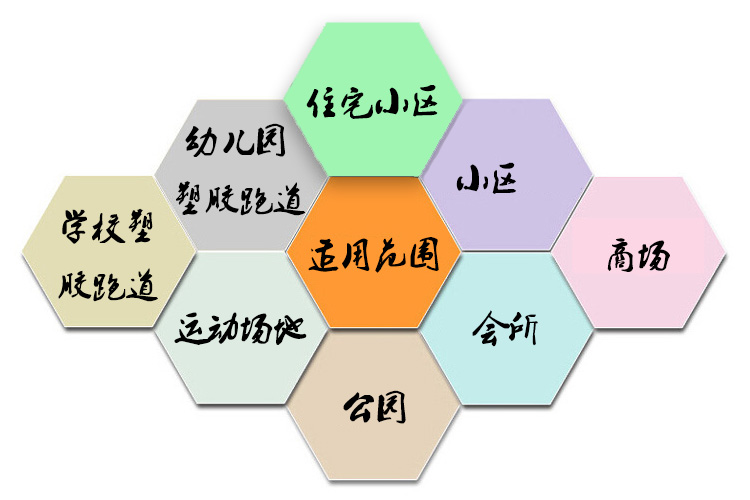 塑膠跑道主要適用于各級各類學(xué)校、幼兒園、專業(yè)體育場、田徑場跑道、半圓區(qū)、輔助區(qū),全民健身路徑,室內(nèi)體育館訓(xùn)練跑道,游樂場道路鋪面,室內(nèi)外跑道、網(wǎng)球、籃球、排球、羽毛球、手球等場地,公園、居民小區(qū)等活動場地。