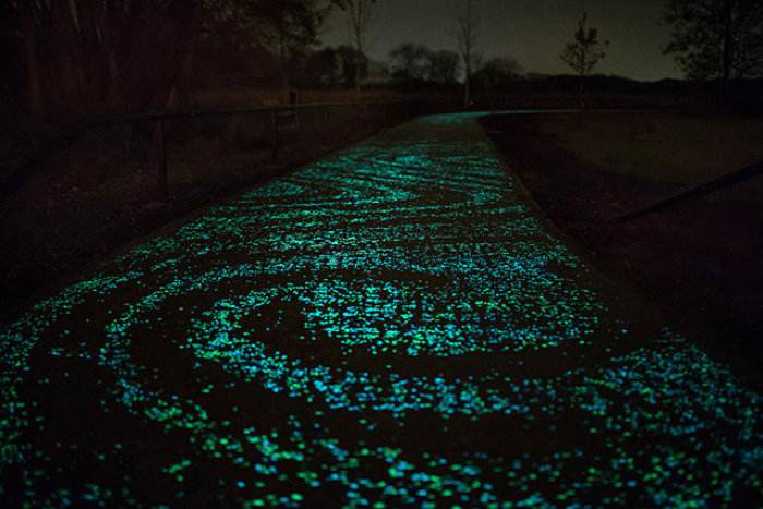 夜光石透水地坪又稱(chēng)熒光石地坪,是在普通的透水混凝土的基礎(chǔ)上,嵌入人造夜光石,使其擁有夜晚發(fā)光的性能,同時(shí)能夠透氣透水,不僅美觀了環(huán)境,更加符合生態(tài)環(huán)境的發(fā)展。人造夜光石是利用稀土元素激活的堿土鋁酸鹽、硅酸鹽等的高科技研發(fā)的自發(fā)光產(chǎn)品。白天吸收光10-20分鐘即可在晚上持續(xù)發(fā)光12小時(shí)。