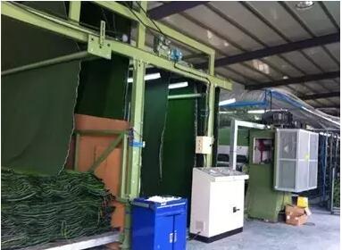 沒錯(cuò),就是這些織布機(jī)一樣的家伙,將一個(gè)個(gè)沙頭穿好,然后織好,那么最后一幅圖上的設(shè)備是做什么用的呢?長見識(shí)的機(jī)會(huì)來了,這叫做烘干機(jī),草坪織好后,背面要涂背膠,背膠涂好后,需要烘干。