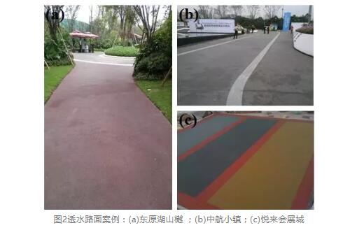 建設(shè)海綿城市,必不可少的是利用透水性材料。透水性材料能充分發(fā)揮自身的優(yōu)點,使雨水能更好的進(jìn)行存儲、滲透,并能對徑流雨水中不同種類的污染物有一定程度的凈化作用,滿足海綿城市對材料的要求。因此,透水性材料被廣泛研究。透水性材料主要包括三種:透水瀝青混凝土(a)、透水混凝土(b)和透水磚(c),如圖1所示。